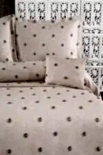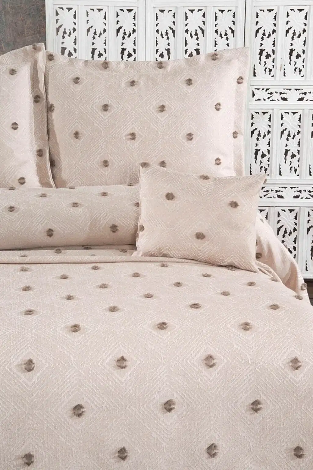 Çeyizlerin en zarif ve kullanışlı parçalarından biri olan Viorra Collection Jakarlı Pike Takımı, yatak odanızın dekorasyonuna asil bir dokunuş katmak için tasarlandı. Jakar dokuma tekniği ile kumaşa işlenen kendinden desenli motifler, yatak odanıza derinlik ve zengin bir görünüm kazandırır.