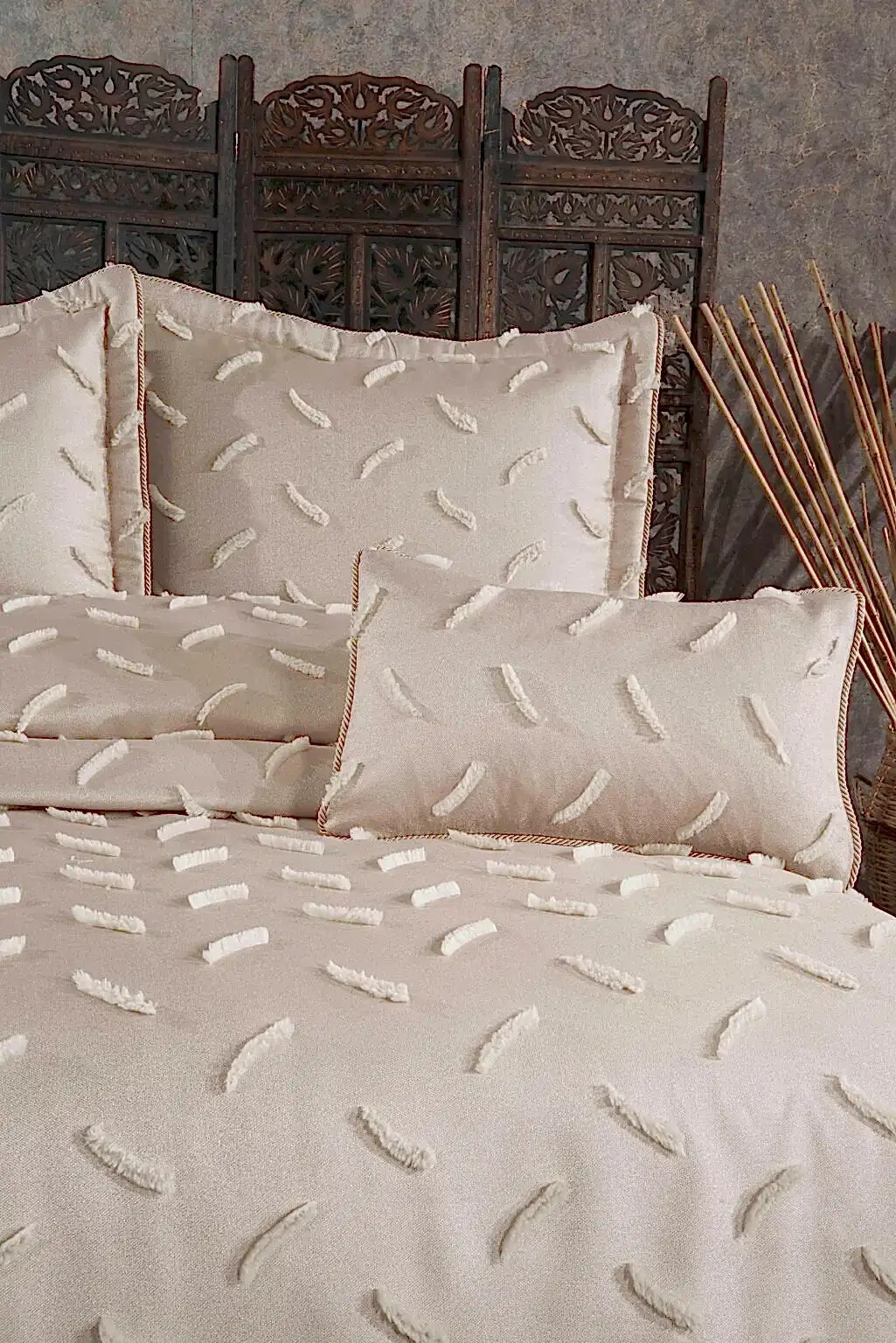 Özellikle çeyiz hazırlığı yapanlar için vazgeçilmez bir parça olan bu takım, yatak odasına prestij katmak isteyenlerin ilk tercihi.