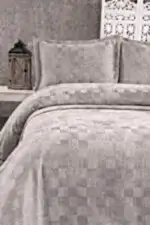 Çeyizlerin en zarif ve kullanışlı parçalarından biri olan Viorra Collection Jakarlı Pike Takımı, yatak odanızın dekorasyonuna asil bir dokunuş katmak için tasarlandı. Jakar dokuma tekniği ile kumaşa işlenen kendinden desenli motifler, yatak odanıza derinlik ve zengin bir görünüm kazandırır.