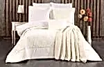 Set içerisinde yer alan yatak örtüsü, nevresim takımı ve yumuşacık battaniye, birbirleriyle tam uyumlu renk ve desenlerden oluşur. 6 adet yastık kılıfı (dantelli, desenli ve pano) ile yatağınızda katmanlı ve lüks bir otel konforu oluşturabilirsiniz.