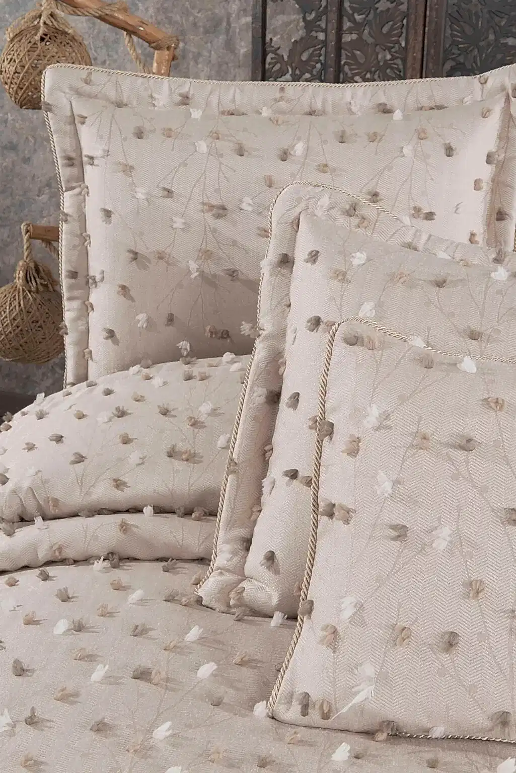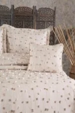 Özellikle çeyiz hazırlığı yapanlar için vazgeçilmez bir parça olan bu takım, yatak odasına prestij katmak isteyenlerin ilk tercihi.