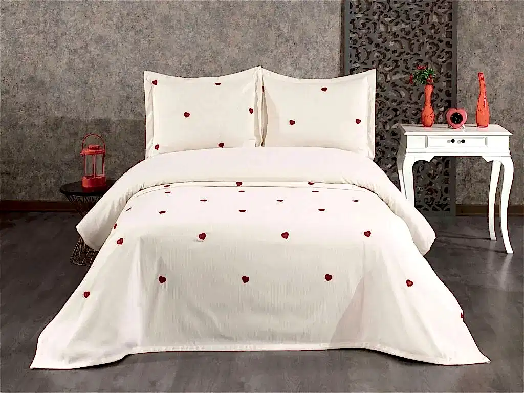 Çeyizlerin en zarif ve kullanışlı parçalarından biri olan Viorra Collection Jakarlı Pike Takımı, yatak odanızın dekorasyonuna asil bir dokunuş katmak için tasarlandı. Jakar dokuma tekniği ile kumaşa işlenen kendinden desenli motifler, yatak odanıza derinlik ve zengin bir görünüm kazandırır.