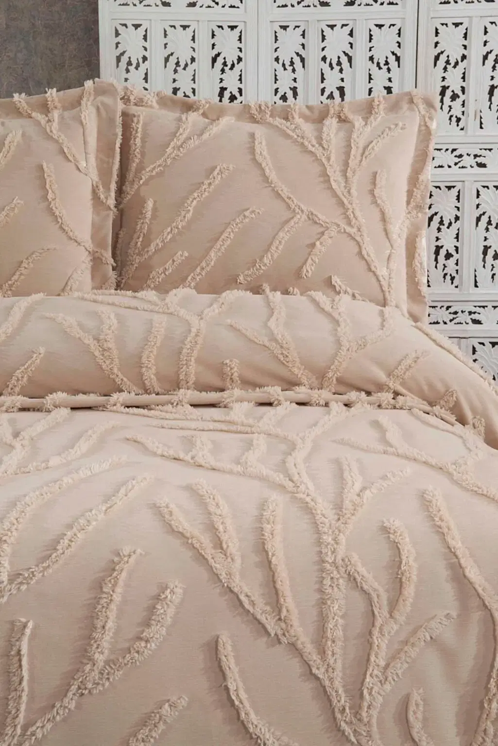 Çeyizlerin en zarif ve kullanışlı parçalarından biri olan Viorra Collection Jakarlı Pike Takımı, yatak odanızın dekorasyonuna asil bir dokunuş katmak için tasarlandı. Jakar dokuma tekniği ile kumaşa işlenen kendinden desenli motifler, yatak odanıza derinlik ve zengin bir görünüm kazandırır.
