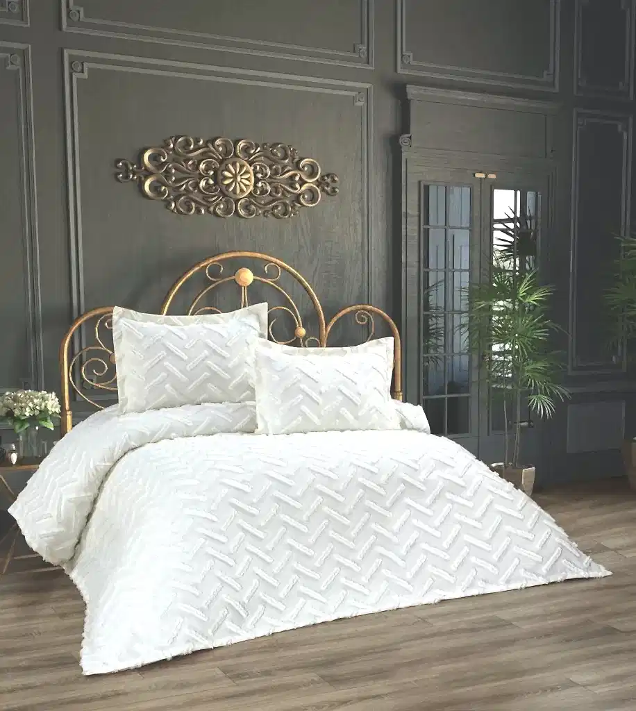 Çeyizlerin en zarif ve kullanışlı parçalarından biri olan Viorra Collection Jakarlı Pike Takımı, yatak odanızın dekorasyonuna asil bir dokunuş katmak için tasarlandı. Jakar dokuma tekniği ile kumaşa işlenen kendinden desenli motifler, yatak odanıza derinlik ve zengin bir görünüm kazandırır.