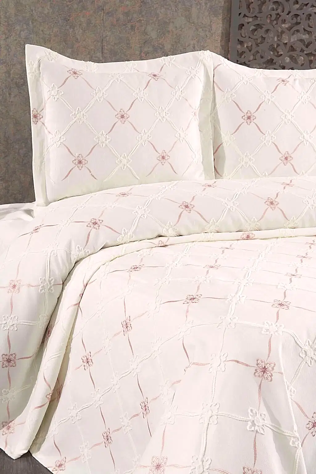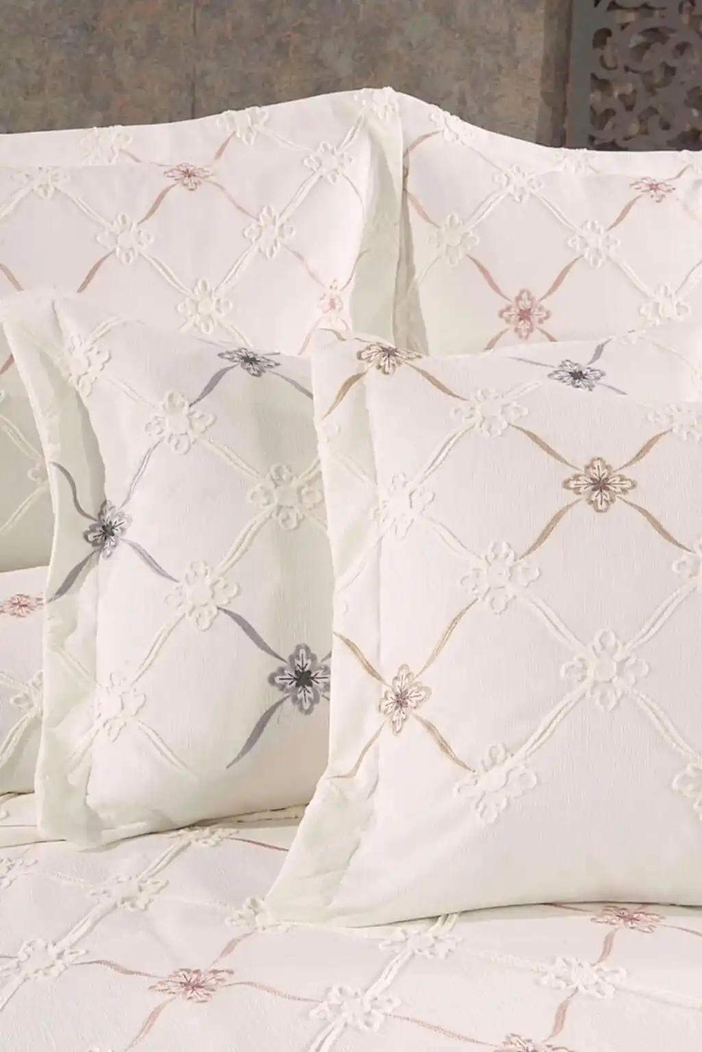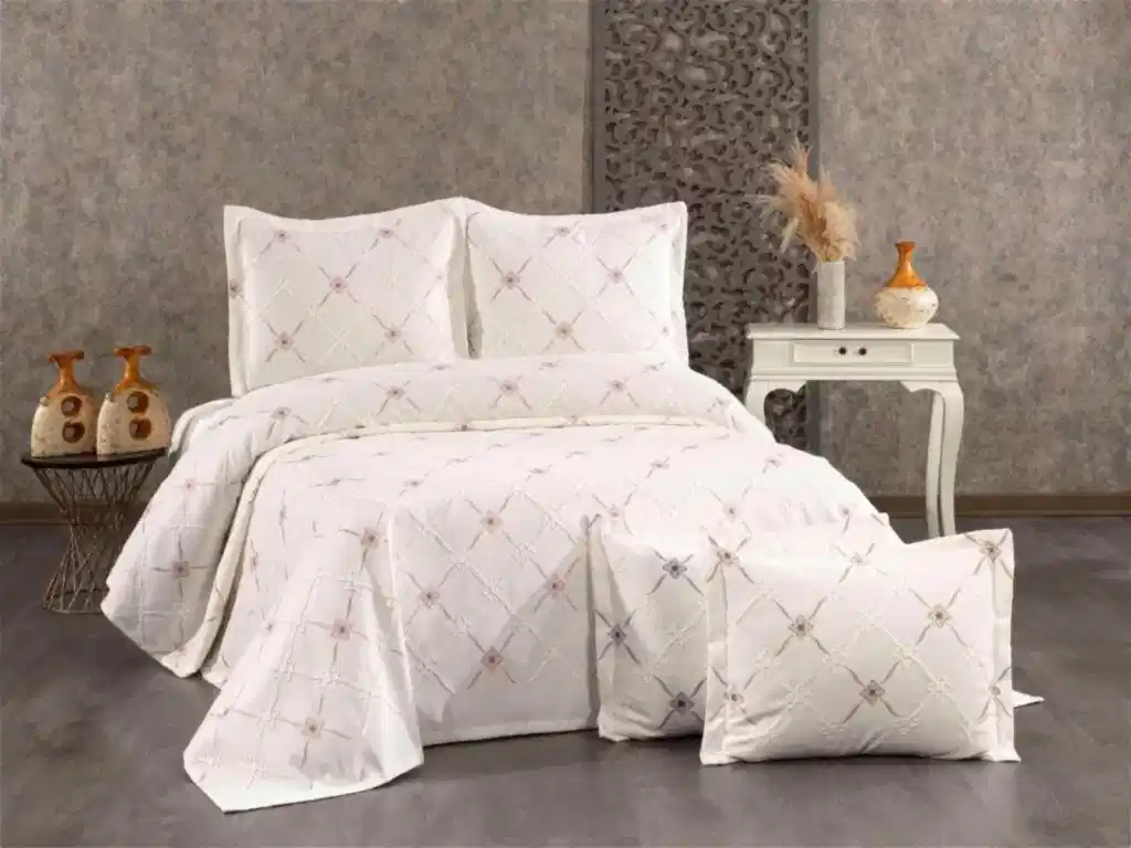 Çeyizlerin en zarif ve kullanışlı parçalarından biri olan Viorra Collection Jakarlı Pike Takımı, yatak odanızın dekorasyonuna asil bir dokunuş katmak için tasarlandı. Jakar dokuma tekniği ile kumaşa işlenen kendinden desenli motifler, yatak odanıza derinlik ve zengin bir görünüm kazandırır.